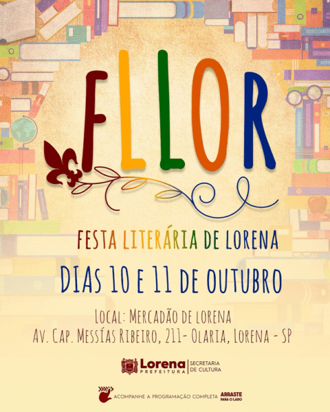 Nos dias 10 e 11 de outubro, Lorena promove a 2ª edição da FLLOR, a Festa Literária de Lorena. Com o tema “Literatura e Democracia -… Fonte: Lorenanews.com.br