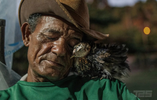 Intitulada “Shouder to lean on” (traduzido como “Ombro amigo”), a fotografia captura um momento comovente de Damião Carlos da Silva, um morador que se viu compelido a deixar a casa em que viveu por mais de duas décadas. O solo sob seus pés cedeu às margens da lagoa Mundaú, e na imagem, ele é visto com um pequeno pintinho de estimação apoiado em seu ombro. O retrato, que exala afeto e resiliência, ilustra o impacto devastador de um desastre ambiental que afetou não unicamente a infraestrutura, mas também a vida e a conexão emocional dos moradores.